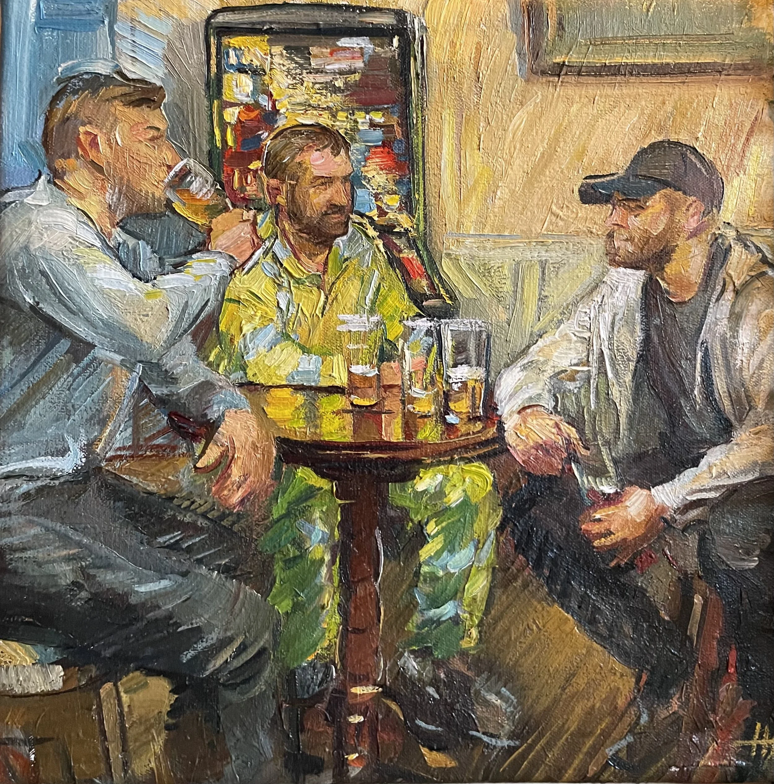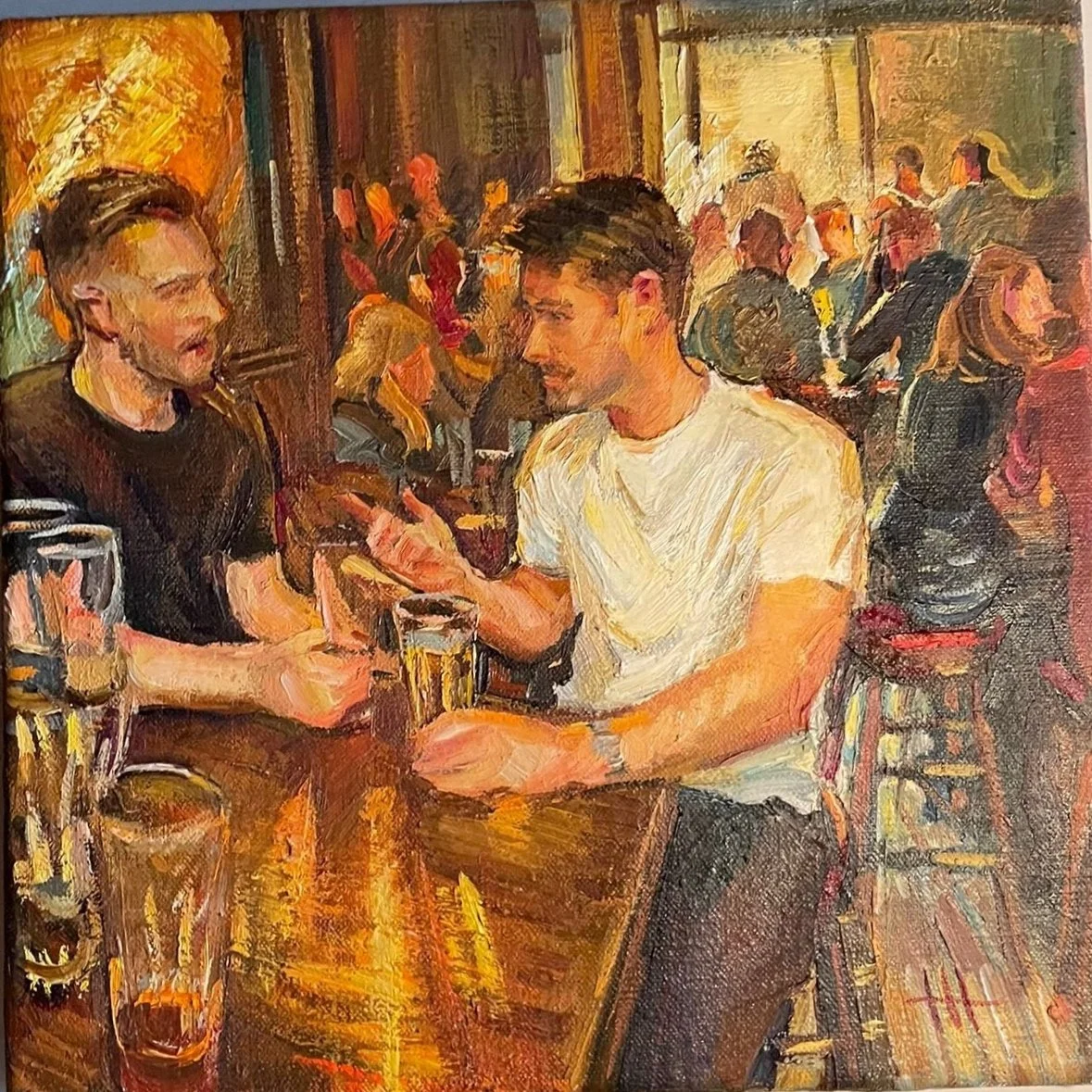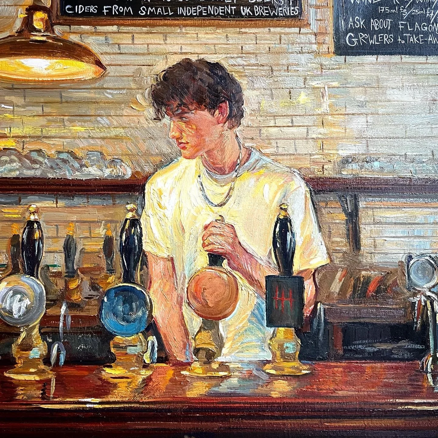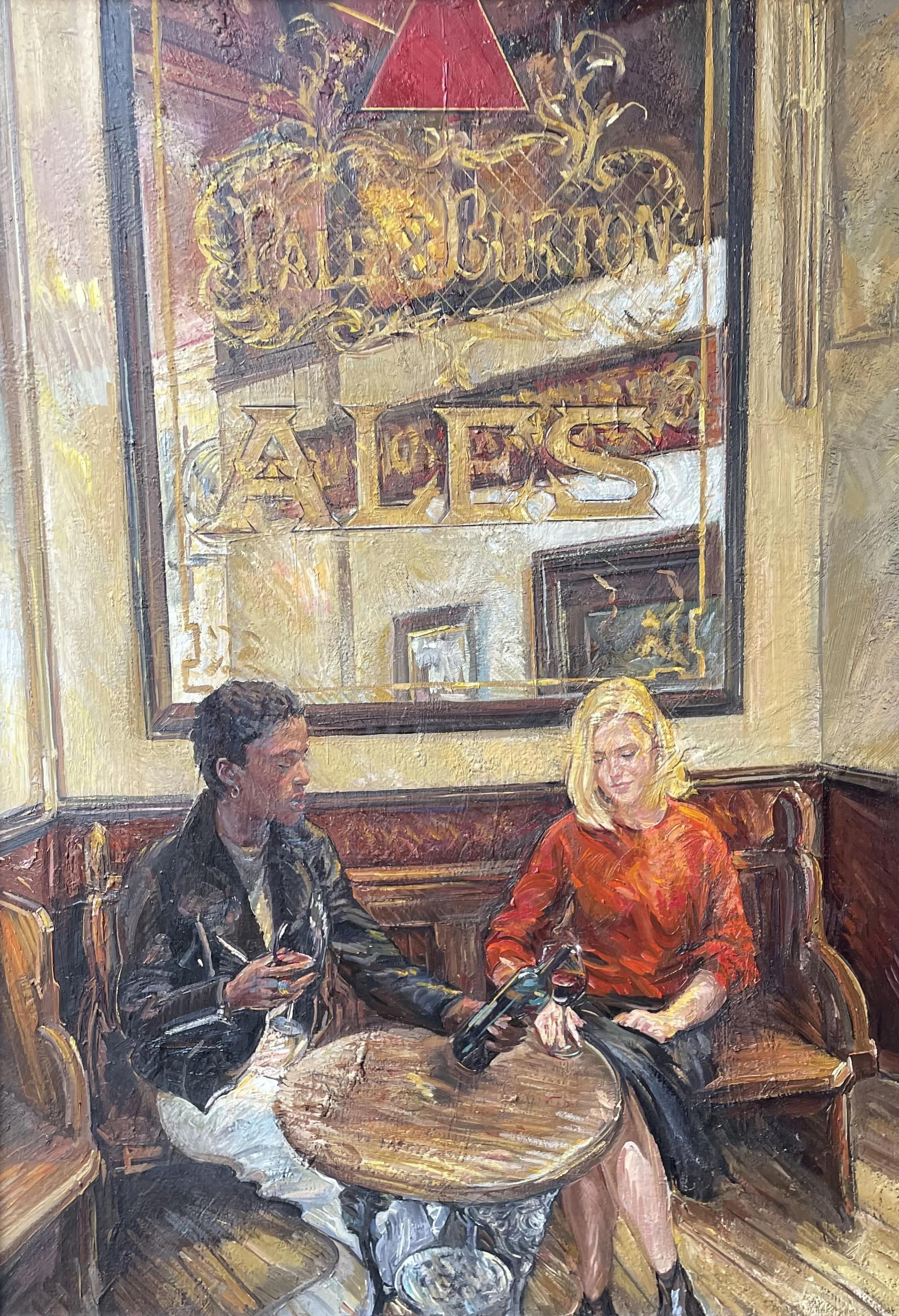 Dive deep into the British alcohol-soaked boozer. The Pub is a home away from home, an integral familiar spot you can find in every corner of the country. Together in one watering hole you are met with an intoxicating (or intoxicated) crowd from all walks of life. These paintings are snapshots, every piece reflects a story that only life itself could tell.
